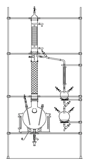 - Packed Column On Center Neck of the Vessel, Reflux Divider, Coil Type Heat Exchanger & Vent at Top for Removing Excess Vapor.